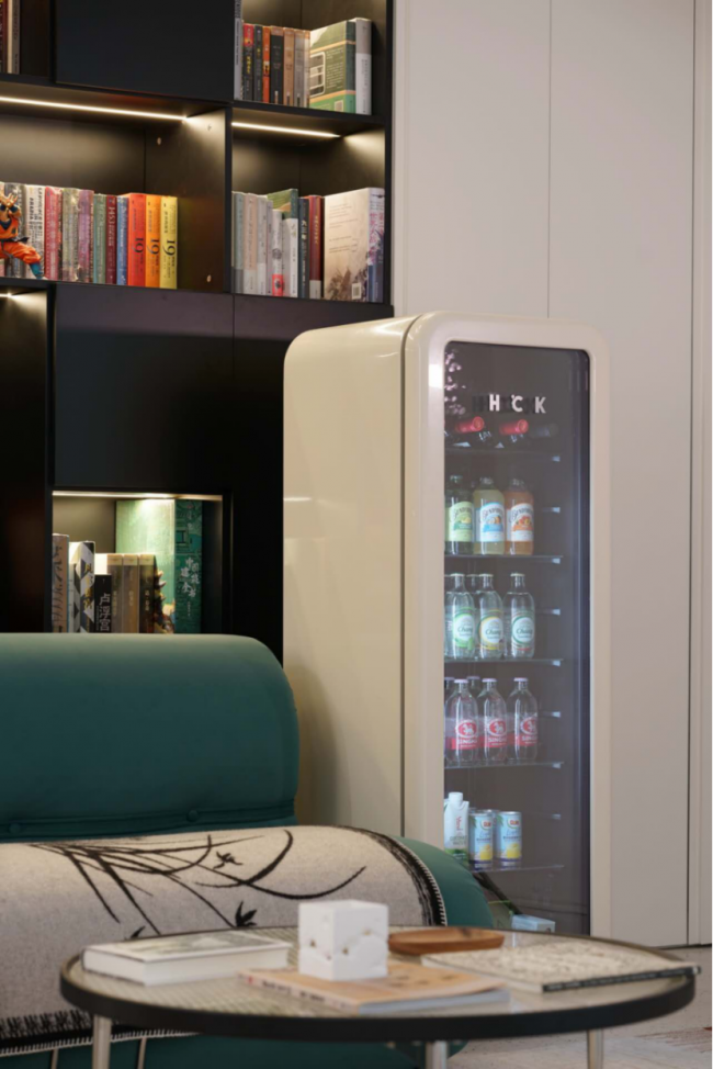 第一次看到HCK哈士奇鲜鲜吧,很难不被它的复古气质吸引——经典的80°圆弧机身,无缝一体成型,没有难擦的缝隙,摆在任何地方都像一件精致的家具。宽度仅47cm,占地不到0.23㎡,相当于两张A4纸并排。客厅沙发旁、餐边柜缝隙、门店收银台边角,都能轻松安放。隐藏式铰链支持贴墙开门,两侧无需预留散热空间,对小户型或寸土寸金的商业空间格外友好。